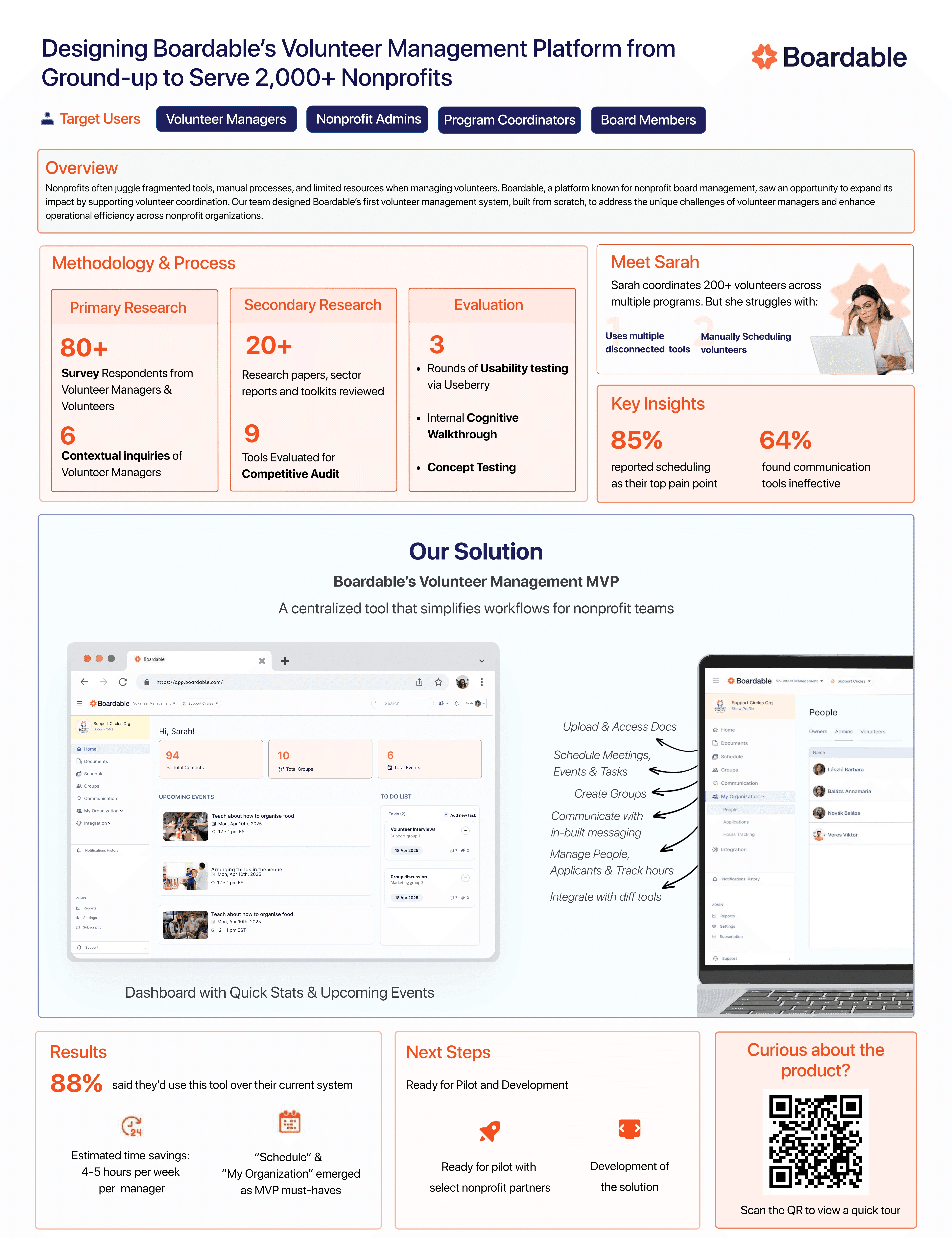 This project aimed to enhance Boardable's platform by integrating a volunteer management system tailored to help nonprofits more effectively manage, engage and retain volunteers.