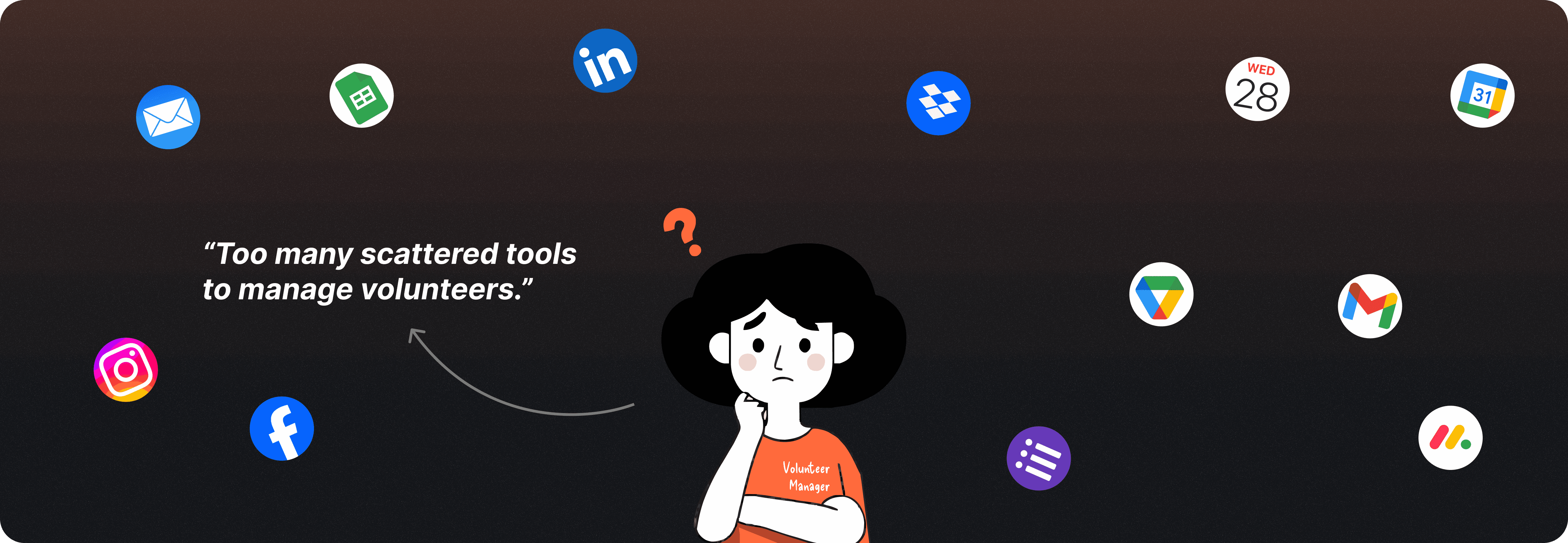 Managers juggle spreadsheets, emails, and calendars, lack of centralized document sharing, creating inefficiency and a fragmented volunteer experience.