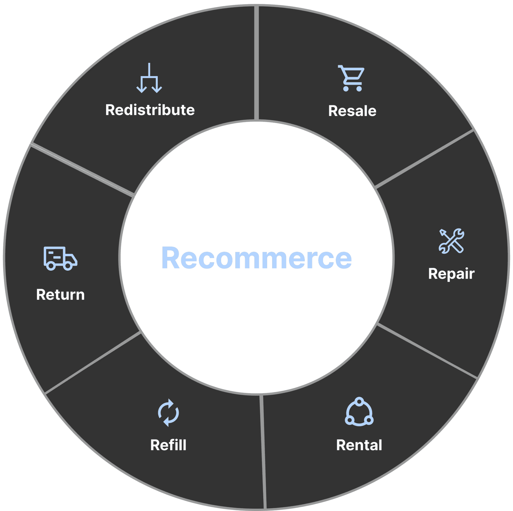 Recommerce is the resale, rental, or refurbishment of previously owned products, extending their life cycles and promoting sustainability by reducing waste.
