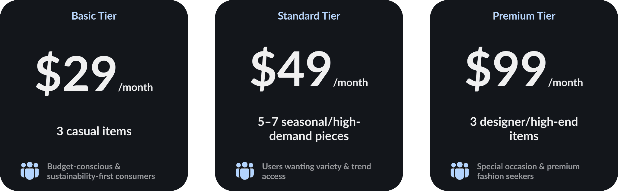 We designed a revenue model to ensure the business remains profitable and scalable while supporting the sustainability-driven subscription model.
